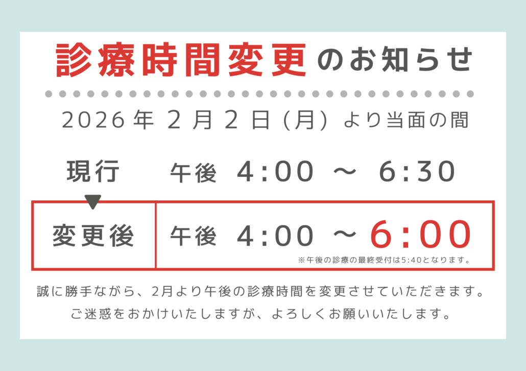 2月からの診療時間変更のお知らせ
